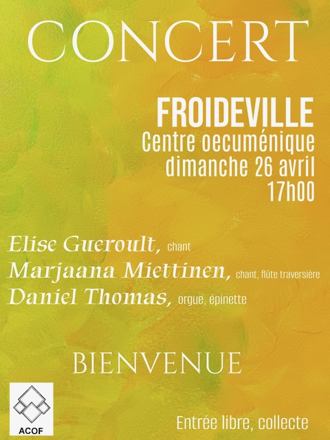 ACOF - concert orgue, flûte, chants - 26 avril dès 17h00 au COF